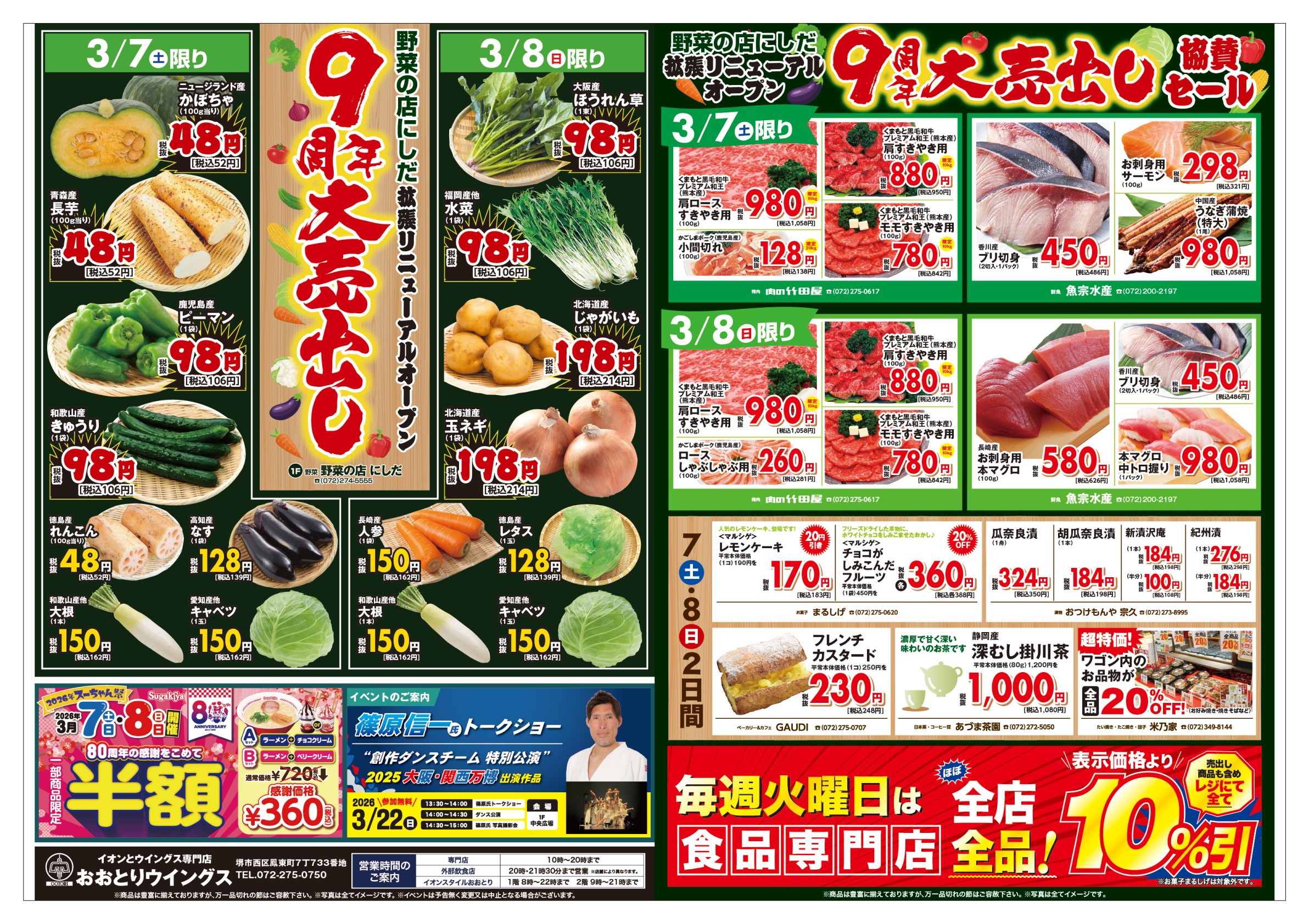 営業時間:10:00~20:00 TEL:072-275-0750 外部飲食店は20:00・21:30まで ※店舗により異なります。