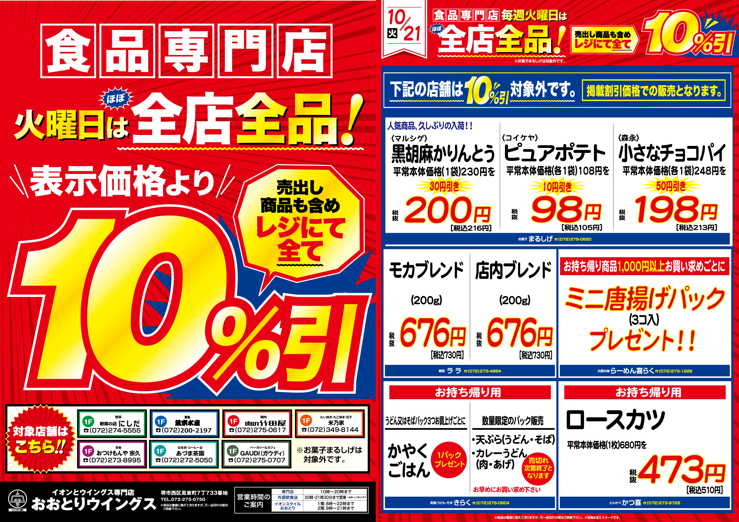 営業時間:10:00~20:00 TEL:072-275-0750 外部飲食店は20:00・21:30まで ※店舗により異なります。