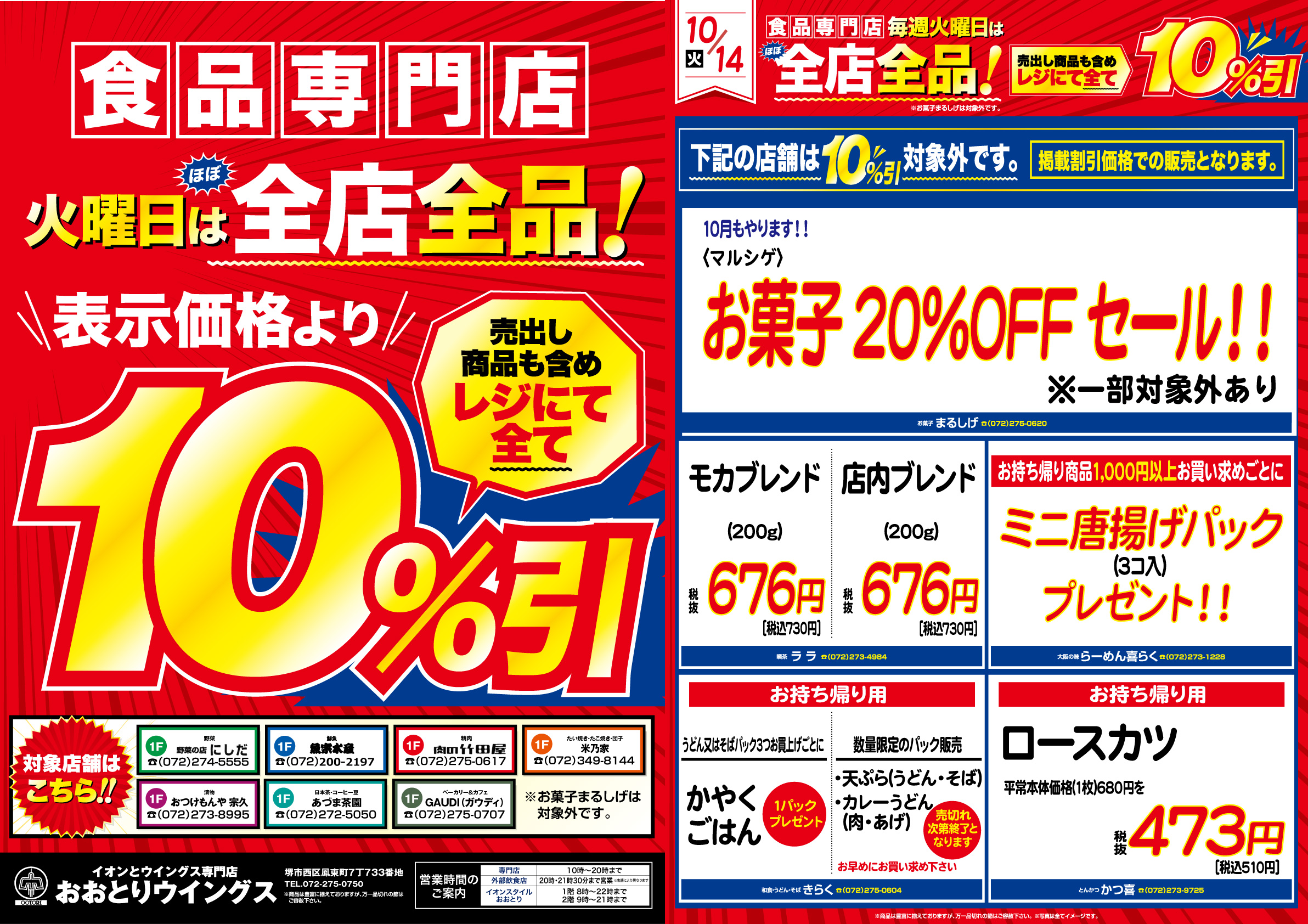 営業時間:10:00~20:00 TEL:072-275-0750 外部飲食店は20:00・21:30まで ※店舗により異なります。